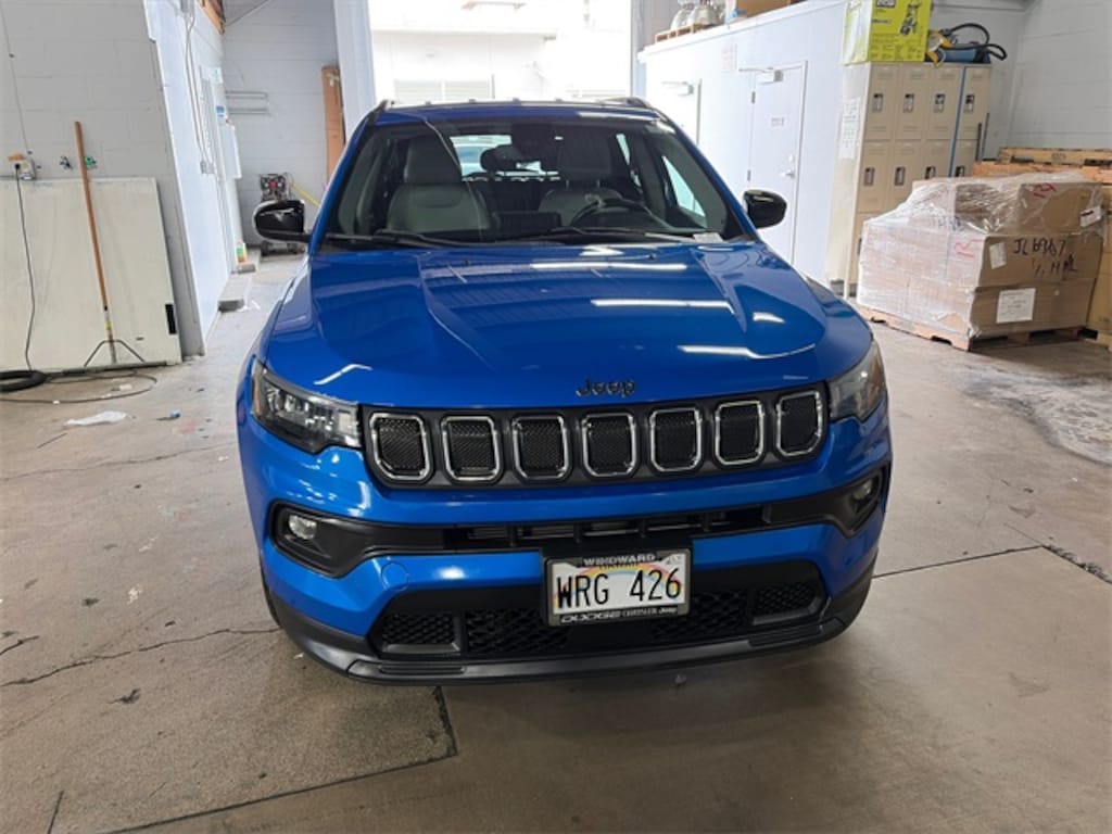 Laser Blue Pearlcoat 2022 Jeep Compass Latitude FWD 6-Speed Aisin Automatic 2.4L I4 Traditional Certified, 115V Auxiliary Power Outlet, 17" x 7" Painted Aluminum Wheels, 2nd Row USB Type A/C Charge Only, 3.502 Axle Ratio, 4-Wheel Disc Brakes, 6 Speakers, ABS brakes, Air Conditioning, Air Conditioning ATC w/Dual Zone Control, All-Season Floor Mats, Alloy wheels, AM/FM radio: SiriusXM, Anti-whiplash front head restraints, Auto High-beam Headlights, Auto-Dimming Rear-View Mirror, Brake assist, Bumpers: body-color, Compass, Convenience Group, Delay-off headlights, Driver door bin, Driver vanity mirror, Dual front impact airbags, Dual front side impact airbags, Electronic Stability Control, Emergency communication system: SiriusXM Guardian, Foot Activated Open 'N Go Liftgate, Four wheel independent suspension, Front anti-roll bar, Front Bucket Seats, Front Center Armrest w/Storage, Front fog lights, Front License Plate Bracket, Front reading lights, Fully automatic headlights, Heated door mirrors, Heated Front Seats, Heated Steering Wheel, Humidity Sensor, Illuminated entry, Knee airbag, Leather Shift Knob, Leather Wrapped Steering Wheel, Low tire pressure warning, Occupant sensing airbag, Outside temperature display, Overhead airbag, Overhead console, Panic alarm, ParkView Rear Back-Up Camera, Passenger door bin, Passenger vanity mirror, Power Adjust 8-Way Driver Seat, Power door mirrors, Power Liftgate, Power steering, Power windows, Premium Cloth/Vinyl Bucket Seats, Quick Order Package 28J, Radio: Uconnect 5 w/10.1" Display, Radio: Uconnect 5 w/8.4" Display (DISC), Rear anti-roll bar, Rear seat center armrest, Rear window defroster, Rear window wiper, Remote keyless entry, Remote Start System, Reversible Carpet/Vinyl Cargo Mat, Roof rack: rails only, Security Alarm, Speed control, Split folding rear seat, Spoiler, Steering wheel mounted audio controls, Tachometer, Telescoping steering wheel, Tilt steering wheel, Traction control, Trip computer, Universal Garage Door Opener, Variably intermittent wipers, Vehicle Information Center, Windshield Wiper De-Icer, 115V Auxiliary Power Outlet, 17" x 7" Painted Aluminum Wheels, 2nd Row USB Type A/C Charge Only, 3.502 Axle Ratio, 4-Wheel Disc Brakes, 6 Speakers, ABS brakes, Air Conditioning, Air Conditioning ATC w/Dual Zone Control, All-Season Floor Mats, Alloy wheels, AM/FM radio: SiriusXM, Anti-whiplash front head restraints, Auto High-beam Headlights, Auto-Dimming Rear-View Mirror, Brake assist, Bumpers: body-color, Compass, Convenience Group, Delay-off headlights, Driver door bin, Driver vanity mirror, Dual front impact airbags, Dual front side impact airbags, Electronic Stability Control, Emergency communication system: SiriusXM Guardian, Foot Activated Open 'N Go Liftgate, Four wheel independent suspension, Front anti-roll bar, Front Bucket Seats, Front Center Armrest w/Storage, Front fog lights, Front License Plate Bracket, Front reading lights, Fully automatic headlights, Heated door mirrors, Heated Front Seats, Heated Steering Wheel, Humidity Sensor, Illuminated entry, Knee airbag, Leather Shift Knob, Leather Wrapped Steering Wheel, Low tire pressure warning, Occupant sensing airbag, Outside temperature display, Overhead airbag, Overhead console, Panic alarm, ParkView Rear Back-Up Camera, Passenger door bin, Passenger vanity mirror, Power Adjust 8-Way Driver Seat, Power door mirrors, Power Liftgate, Power steering, Power windows, Premium Cloth/Vinyl Bucket Seats, Quick Order Package 28J, Radio: Uconnect 5 w/10.1" Display, Radio: Uconnect 5 w/8.4" Display (DISC), Rear anti-roll bar, Rear seat center armrest, Rear window defroster, Rear window wiper, Remote keyless entry, Remote Start System, Reversible Carpet/Vinyl Cargo Mat, Roof rack: rails only, Security Alarm, Speed control, Split folding rear seat, Spoiler, Steering wheel mounted audio controls, Tachometer, Telescoping steering wheel, Tilt steering wheel, Traction control, Trip computer, Universal Garage Door Opener, Variably