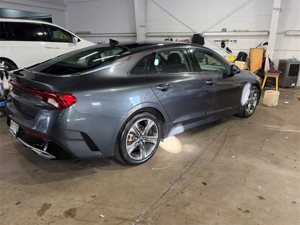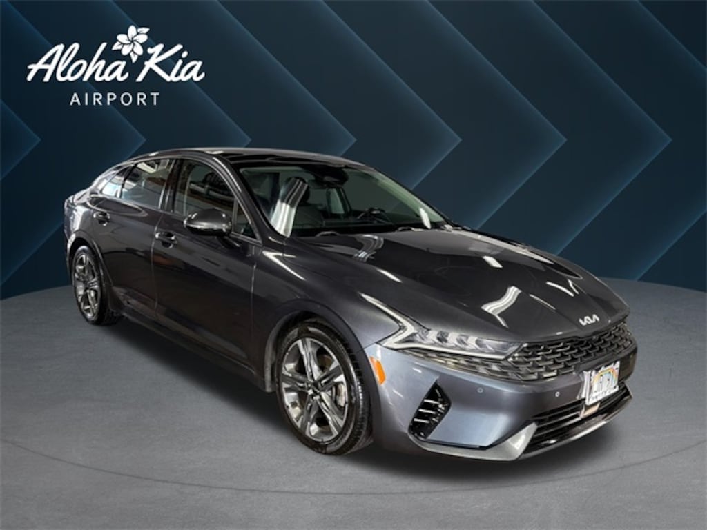 Gravity Gray 2022 Kia K5 EX FWD 8-Speed Automatic I4 10-Way Power Passenger Seat, 4-Wheel Disc Brakes, 6 Speakers, ABS brakes, Active Sound Design, Air Conditioning, Alloy wheels, AM/FM radio: SiriusXM, Apple CarPlay & Android Auto, Auto High-beam Headlights, Auto Up/Down Rear Windows, Automatic temperature control, Bose Premium Audio, Brake assist, Bumpers: body-color, Cargo Net, Carpeted Floor Mats, Delay-off headlights, Driver door bin, Driver vanity mirror, Dual front impact airbags, Dual front side impact airbags, Electronic Stability Control, Emergency communication system, EX Premium Package, Forward Collision Avoidance-Assist - Cyclist, Forward Collision Avoidance-Assist - Junction Turn, Four wheel independent suspension, Front anti-roll bar, Front Bucket Seats, Front Center Armrest, Front dual zone A/C, Front reading lights, Fully automatic headlights, Heated & Ventilated Front Bucket Seats, Heated door mirrors, Heated front seats, Heated Steering Wheel, Illuminated entry, Knee airbag, Leatherette Seat Trim, LED Rear Combi Lamps, Low tire pressure warning, Memory Driver's Seat & Outside Mirrors, Navigation System, Navigation-Based Smart Cruise Control - Curve, Occupant sensing airbag, Outside Mirrors w/LED Turn Signals, Outside temperature display, Overhead airbag, Overhead console, Panic alarm, Parking Collision Avoidance-Assist - Reverse, Parking Distance Warning - Forward, Passenger door bin, Passenger vanity mirror, Power Child Lock, Power door mirrors, Power driver seat, Power Folding Outside Mirrors, Power moonroof, Power steering, Power windows, Radio data system, Radio: AM/FM/MP3 Audio System, Rear anti-roll bar, Rear Bumper Applique, Rear reading lights, Rear seat center armrest, Rear side impact airbag, Rear window defroster, Remote keyless entry, Safe Exit Assist w/Lock, Security system, Smart Cruise Control w/Stop & Go, Smart Key w/ Push Button and Remote Start, Speed control, Speed-sensing steering, Split folding rear seat, Steering wheel mounted audio controls, Surround View Monitor, Tachometer, Telescoping steering wheel, Tilt steering wheel, Traction control, Trip computer, Variably intermittent wipers, Ventilated front seats, Wheels: 7.5J x 18" Gray Machined Finish Alloy, Backup Camera / Reverse Camera / Rear View Camera, 10-Way Power Passenger Seat, 4-Wheel Disc Brakes, 6 Speakers, ABS brakes, Active Sound Design, Air Conditioning, Alloy wheels, AM/FM radio: SiriusXM, Apple CarPlay & Android Auto, Auto High-beam Headlights, Auto Up/Down Rear Windows, Automatic temperature control, Bose Premium Audio, Brake assist, Bumpers: body-color, Cargo Net, Carpeted Floor Mats, Delay-off headlights, Driver door bin, Driver vanity mirror, Dual front impact airbags, Dual front side impact airbags, Electronic Stability Control, Emergency communication system, EX Premium Package, Forward Collision Avoidance-Assist - Cyclist, Forward Collision Avoidance-Assist - Junction Turn, Four wheel independent suspension, Front anti-roll bar, Front Bucket Seats, Front Center Armrest, Front dual zone A/C, Front reading lights, Fully automatic headlights, Heated & Ventilated Front Bucket Seats, Heated door mirrors, Heated front seats, Heated Steering Wheel, Illuminated entry, Knee airbag, Leatherette Seat Trim, LED Rear Combi Lamps, Low tire pressure warning, Memory Driver's Seat & Outside Mirrors, Navigation System, Navigation-Based Smart Cruise Control - Curve, Occupant sensing airbag, Outside Mirrors w/LED Turn Signals, Outside temperature display, Overhead airbag, Overhead console, Panic alarm, Parking Collision Avoidance-Assist - Reverse, Parking Distance Warning - Forward, Passenger door bin, Passenger vanity mirror, Power Child Lock, Power door mirrors, Power driver seat, Power Folding Outside Mirrors, Power moonroof, Power steering, Power windows, Radio data system, Radio: AM/FM/MP3 Audio System, Rear anti-roll bar, Rear Bumper Applique, Rear reading lights, Rear seat center armrest, Rear side impact airbag, Rear window d