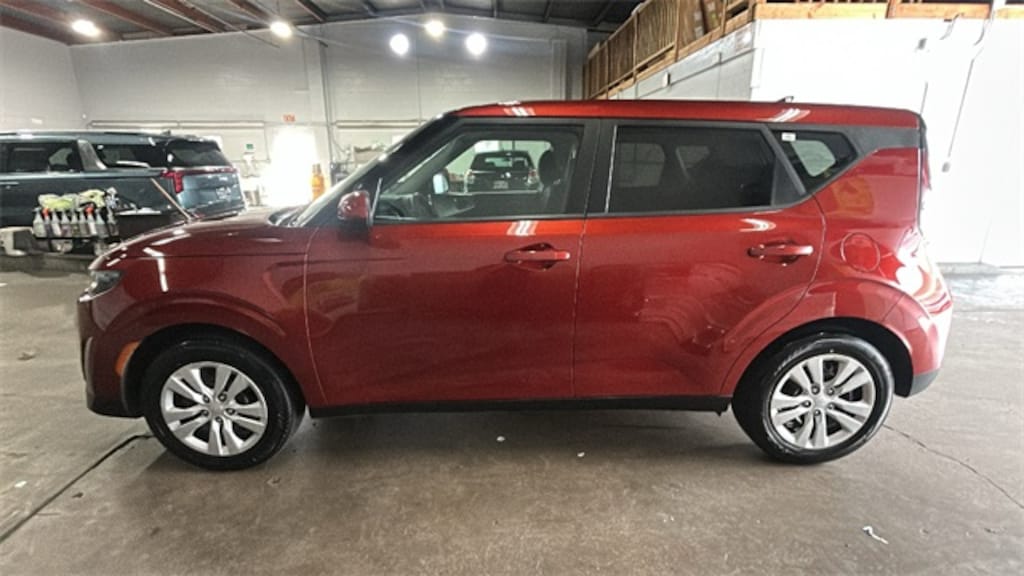 Mars Orange 2025 Kia Soul LX FWD CVT 2.0L I4 DOHC 4-Wheel Disc Brakes, 6 Speakers, 6.5J x 16" Alloy Wheels, 6.5J x 16" Steel Wheels, ABS brakes, Air Conditioning, AM/FM radio, Apple CarPlay & Android Auto, Auto High-beam Headlights, Brake assist, Bumpers: body-color, Cargo Net, Carpeted Floor Mats, Compass, Delay-off headlights, Driver door bin, Driver vanity mirror, Dual front impact airbags, Dual front side impact airbags, Electronic Stability Control, Exterior Parking Camera Rear, Front anti-roll bar, Front Bucket Seats, Front Center Armrest, Front reading lights, Front wheel independent suspension, Fully automatic headlights, Illuminated entry, Low tire pressure warning, Occupant sensing airbag, Outside temperature display, Overhead airbag, Overhead console, Panic alarm, Passenger door bin, Passenger vanity mirror, Power door mirrors, Power steering, Power windows, Radio data system, Radio: AM/FM/MP3/HD Audio System, Rear window defroster, Rear window wiper, Remote keyless entry, Speed control, Speed-sensing steering, Split folding rear seat, Steering wheel mounted audio controls, Tachometer, Telescoping steering wheel, Tilt steering wheel, Traction control, Trip computer, Variably intermittent wipers, Woven & Tricot Cloth Seat Trim, Backup Camera / Reverse Camera / Rear View Camera, 4-Wheel Disc Brakes, 6 Speakers, 6.5J x 16" Alloy Wheels, 6.5J x 16" Steel Wheels, ABS brakes, Air Conditioning, AM/FM radio, Apple CarPlay & Android Auto, Auto High-beam Headlights, Brake assist, Bumpers: body-color, Cargo Net, Carpeted Floor Mats, Compass, Delay-off headlights, Driver door bin, Driver vanity mirror, Dual front impact airbags, Dual front side impact airbags, Electronic Stability Control, Exterior Parking Camera Rear, Front anti-roll bar, Front Bucket Seats, Front Center Armrest, Front reading lights, Front wheel independent suspension, Fully automatic headlights, Illuminated entry, Low tire pressure warning, Occupant sensing airbag, Outside temperature display, Overhead airbag, Overhead console, Panic alarm, Passenger door bin, Passenger vanity mirror, Power door mirrors, Power steering, Power windows, Radio data system, Radio: AM/FM/MP3/HD Audio System, Rear window defroster, Rear window wiper, Remote keyless entry, Speed control, Speed-sensing steering, Split folding rear seat, Steering wheel mounted audio controls, Tachometer, Telescoping steering wheel, Tilt steering wheel, Traction control, Trip computer, Variably intermittent wipers, Woven & Tricot Cloth Seat Trim.